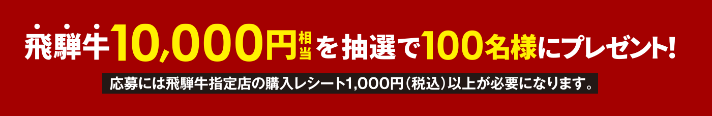 | 購入レシート対象店 | 全国の飛騨牛販売・料理指定店 |